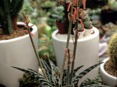 기본 정보 식물명 : 무늬알로에, 천대전금 학명 : Aloe variegata L. 영문명 : Partridge breast aloe; Kanniedood aloe; Tiger aloe 과명 : 백합과 (Liliaceae) 자원구분 : 재배품종 분류체계 : 피자식물문 > 단자엽식물강 > 백합목 > 백합과 > 알로에속