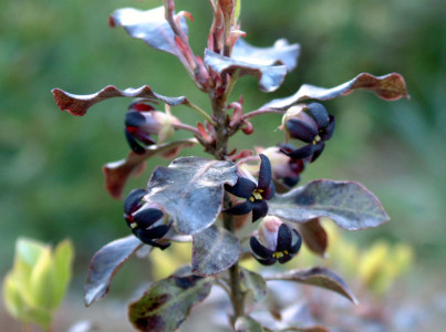 기본 정보 식물명 : 얇은잎돈나무 '퍼퍼레움' 학명 : Pittosporum tenuifolium 'Purpureum' 영문명 : Tawhiwhi; Kohuhu 과명 : 돈나무과 (Pittosporaceae) 자원구분 : 재배품종 분류체계 : 피자식물문 > 쌍자엽식물강 > 장미목 > 돈나무과 > 돈나무속
