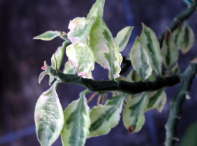기본 정보 식물명 : 무늬티티말로이데스페딜란투스 학명 : Pedilanthus tithymaloides 'Variegatus' 영문명 : Devil's-backbone 과명 : 대극과 (Euphorbiaceae) 자원구분 : 재배품종 분류체계 : 피자식물문 > 쌍자엽식물강 > 쥐손이풀목 > 대극과 > 페딜란투스속
