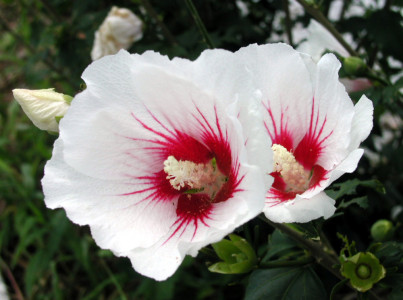 기본 정보 식물명 : 무궁화 '한마음' 학명 : Hibiscus syriacus 'Hanmaeum' 과명 : 아욱과 (Malvaceae) 자원구분 : 재배품종 분류체계 : 피자식물문 > 쌍자엽식물강 > 아욱목 > 아욱과 > 무궁화속