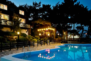 깨끗하고 조용하고 고즈넉한 분위기가 펼쳐진 바다가 주는 그림 같은 풍경이 이곳을 찾는 이들을 항상 기다린다. 숲 속의 바다 펜션은 이원면에 위치한 최신식 유럽풍 스타일의 목조펜션이다. 펜션의 위치가 언덕 위에 있어 바다와 자연 풍경이 한눈에 들어오며 시설 또한 자연과의 조화를 이루어 목조주택으로 지어져 있어 자연의 냄새가 물씬 풍기는 펜션이다. 오솔길 너머로 들리는 맑은 새소리 햇빛 창이 눈부심에 행복하게 눈 뜰 수 있는 곳, 목조 건물의 깔끔한 매력 속으로 초대한다. 탁 트인 전망, 햇살 가득한 테라스, 여행의 소중함을 영원히 간직할 수 있는 곳, 숲 속의 바다펜션에서 멋진 추억을 만들 수 있다.