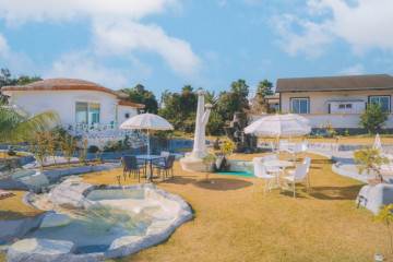 서귀포 하얀언덕 펜션은 표선해수욕장에서 시작하는 올레길4코스 초입에 위치한 펜션이다. 해안도로변에 자리하고 있어 시원한 바다가 한눈에 들어오며, 숙소에서 창문 가득 바다를 볼 수 있다. 바닷물에 잠겨있던 바닷길이 물이 빠지면 드러나 산책을 나갈 수 있고, 물이 빠져 호수처럼 된 바다에서는 스노클링을 즐기고 돌문어, 물고기도 잡을 수 있다. 숙소 앞마당에서 바다를 배경삼아 바비큐까지 즐기면 '제주의 맛'을 느낄 수 있다. 조용한 제주의 바다를 하루종일 옆에 두고 여유로움을 느끼고 싶은 사람들에게 추천하는 펜션이다.