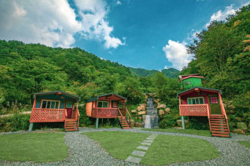 유명산 휴양림 어비계곡 상류에 자리 잡은 물소리펜션은 여름에는 물놀이와 함께 고기도 잡고 겨울에는 아름다운 설경을 즐길 수 있는 곳이다. 야외 바비큐장은 사계절 어느 때나 편안하게 이용할 수 있다. 이용일 전에 사전 문의를 하면 높이 조절이 가능한 바비큐 그릴을 준비해 준다. 또한 펜션 옆 직접 가꾼 텃밭에서 무공해 야채들을 직접 채취해 먹을 수 있으며, 펜션 앞마당에서 아름다운 분위기를 연출할 수 있는 캠프파이어도 즐길 수 있다. 객실은 2인실부터 독채까지 다양한 룸이 마련되어 있다.