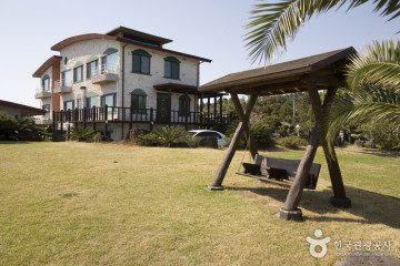 제주도 중문 관광단지가 가까이 있고 시원한 바다가 보이는 전망 좋은 곳에 위치한 뷰티플 하우스는 무더운 여름날 시원하게 머물다 갈 수 있는 곳으로 유명하다. 고풍스러운 원목 인테리어에 실내장식들이 꾸며져 있으며, 넓은 정원에는 수영을 할 수 있도록 풀장이 설치되어 있다. 그리고 정자에서 시원한 시냇물 소리를 들으며 바비큐 파티도 할 수 있다.