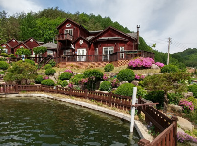 청정지역에 위치한 깨끗하고 펜션 내 송어장이있는 아름다운 펜션이다.