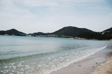 해변 앞으로 섬들이 있구요 뒤쪽으로는 산이 있어서 경관이 빼어납니다.