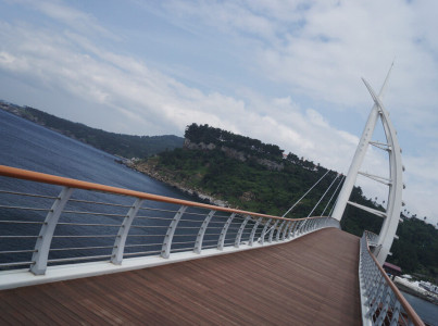 안녕하세요~ 오늘 제가 소개 해드릴 곳은"새연교"입니다.새섬공원으로 가시려면 이 다리를 꼭 지나야 합니다. 제주 서귀포항과 새섬사이에 제주의 전통 떼배인 '테우'를 모티브로 형상화한 대한민국 최남단ㆍ최장의 보도교인 '새연교'가 2009년 9월 28일 개통됐다. 새연교의 건설은 서귀포항이 시드니와 나폴리에 못지않은 세계적 미항으로 도약하는 소중한 의미가 있다.새연교는 국내에서는 최초로 외줄케이블 형식의 길이 169m, 폭 4~7m의 사장교(斜張橋)로, 바람과 돛을 형상화한 높이 45m의 주탑 등에 화려한LED조명시설까지 갖췄다. 새연교를 걸으며 바라보이는 서귀포항을 비롯해 문섬, 범섬 등의 서귀포 앞바다와 한라산의 풍경은 절묘하다. 또한, 쉽게 드나들 수 있게 된 총면적 10만 2천여㎡의 무인도인 새섬은 난대림 보호구역으로 지정된 새섬의 생태를 관찰할 수 있을 뿐만 아니라 1.2㎞의 산책로와 광장, 목재데크로(路), 자갈길ㆍ숲 속 산책로, 테마 포토존 등 다양한 편의시설이 꾸며졌다. 특히, 새연교가 개통됨에 따라 새섬 도시 자연공원을 전면 개방되어 제주도 서귀포의 새로운 관광명소로 떠오르고 있으며, 연주회 등 다양한 행사가 열린다.[네이버 지식백과] 주차를 하고 새연교로 가는 길입니다.저기 테우를 형상화한 새연교가 보이네요사람들이 많아요^^ 저처럼 사진찍으시는 분들도 많으시구요뮤직벤치 입니다.새연교를 오셨다면 새섬은 필수코스에요~새연교를 통해 새섬을 방문해 보세요~~