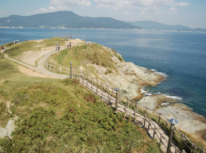 신선대??: 신선이 놀던 자리라 하여 신선대라고 불릴 만큼 경치가 뛰어난 곳.신선대는 바람의 언덕 맞은 편에 있어서많은 사람들이 찾는 곳이예요~^^초록의 풀들과 파란 바다와 하늘 시원한 바람과커다란 바위로 이루어진 신선대를 보니 감탄사가 절로 나오네요~날씨가 좋으니 사진까지 멋지네 나오네요~^^신선대는 '갓'처럼 생겨 갓바위라고도 불리는데벼슬을 원하는 사람이 이 바위에 득관의 제를 올리면소원을 이룬다는 속설도 있다고 합니다.바위에 서면 멀리 다도해 풍경이 펼쳐지고,바위 옆으로는 몽돌이 깔려 있는 작은 해수욕장함목해수욕장이 있습니다.신선대?에서 탁트인 바다 풍경을 감상하기에 너무 좋은 곳이예요~떨어지지 않도록, 다치지 않도록조심해주세요~!!!