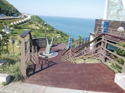 일출명소로 유명한 창포말 등대의영덕해맞이공원 영덕해맞이공원은 강구면과 축산면의 해안선을 따라 조성된 해변공원인데요, 1998년4월부터 개발을 시작해서 2002년에 완공 되었다고 합니다. 해안도로변에 주차를 하고 계단을 통해 내려갈수 있습니다. 엄청난 크기의 집게 조각 아래 바다를 내려다 본모습인데요 공원 아래로 끝없이 펼쳐진 바다는 그야 말로 장관입니다. 멋지죠? 공원 전경입니다. 저는 한참동안 앉아서 저 멀리 바다를하염없이 바라보았답니다.그 동안의 마음상처가 치유된 것 같았어요~힘을 내서 다시 일어서 봅니다. 우선 해안가라서 햇볓은 따갑지만 바람이 많이 불어서 여름에도 그리 덥지만은 않구요 아래로 펼쳐진 바다와 공원이 한폭의 그림처럼 잘 어우러져있는 공원중 하나입니다.